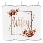 A Wifey Tumbler elegáns és romantikus dizájnjával tökéletes választás menyasszonyoknak, feleségeknek vagy esküvői ajándékként. A fehér háttér csillogó hatása, a rózsaarany virágok és a modern geometriai elemek harmonikus kombinációja stílusos megjelenést kölcsönöz ennek a tumblereknek. A “Wifey” felirat egyedi és személyes érintést ad, amely kifejezi a szeretetet és az összetartozást.