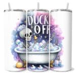 A Kádban Lázadó Csontváz Tumbler garantáltan mosolyt csal az arcokra. Egy vidám csontváz élvezi a habfürdőt, miközben egy gumi kacsa lebeg mellette, és a “Duck Off” felirat koronázza meg az összképet. Ideális választás a humor és a különleges dizájn kedvelőinek. A csontváz és virág motívumok tökéletesen ötvözik a szabadság érzését és a bohém életstílust. Ez a tumbler azok számára készült, akik szeretik a kreatív, vidám és egyedi kiegészítőket, miközben fontos számukra a praktikum és a fenntarthatóság.