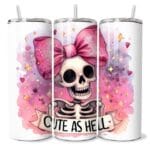 A Szivárvány Csonti Tumbler egy különleges és humoros kiegészítő, amely egy szivárványos masnival díszített csontvázat ábrázol a “Cute as Hell” felirattal. Tökéletes választás mindazok számára, akik szeretik a vidám és egyedi dizájnt. A csontváz és virág motívumok tökéletesen ötvözik a szabadság érzését és a bohém életstílust. Ez a tumbler azok számára készült, akik szeretik a kreatív, vidám és egyedi kiegészítőket, miközben fontos számukra a praktikum és a fenntarthatóság.