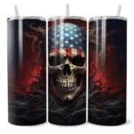 A Patrióta Koponyás Tumbler egy igazán különleges és erőteljes dizájnú italospohár, amely a hazaszeretet és az egyediség szimbólumait ötvözi. A koponya motívumot a nemzeti színek és a hazafias elemek teszik még lenyűgözőbbé, így ez a tumbler tökéletes választás azok számára, akik büszkén viselik identitásukat, és szeretik kifejezni hazaszeretetüket a mindennapi kiegészítőiken keresztül.
