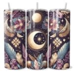 Fedezze fel a Misztikus Holdfény Tumbler varázslatos világát! Ez az egyedülálló dizájn misztikus motívumokkal díszített, beleértve a holdat, csillagokat, tollakat és gyönyörű virágokat. A gazdag, sötét háttér tökéletesen kiemeli az arany és pasztell színek részleteit, megteremtve egy elbűvölő és álomszerű hangulatot. Kiváló minőségű anyagból készült, hogy italait hűvösen vagy melegen tartsa, akármerre is jár. Tökéletes választás azoknak, akik szeretik a misztikus és bohém stílust, és szeretnék mindennapjaikat egy kis varázslattal gazdagítani