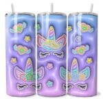 Légy részese a varázslatnak a Lila Egyszarvú Tumblerrel! Ez a tumbler egy álomszerű lila háttérrel és bájos egyszarvú motívumokkal díszített, melyeken szivárványos színek és csillogó szívecskék, csillagok tündökölnek. A tumbler tökéletes választás azoknak, akik szeretik a fantáziadús, mesebeli stílust.