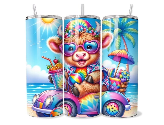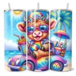 Merüljön el a nyári élvezetekben a Pancsoló Paradicsom Tumblerrel! Ez az egyedülálló tumbler egy aranyos, nyári hangulatú tehenet ábrázol, aki napszemüvegben és színes ruhában ül egy kisautóban a tengerparton, körülvéve napernyőkkel, pálmafákkal és frissítő koktélokkal. Az élénk színek és részletes grafika azonnal mosolyt csal mindenki arcára. Kiváló minőségű anyagból készült, ez a tumbler tartós és ideális társ a forró nyári napokra. Tökéletes ajándék mindenkinek, aki szereti a vidám és játékos dizájnt