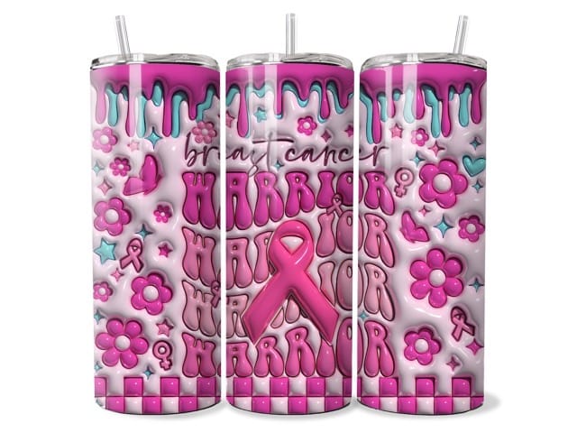 A Harcos Tumbler bátorító és inspiráló dizájnnal rendelkezik, amelyen a “Warrior” felirat és mellrák tudatosságot szimbolizáló rózsaszín szalagok és virágok láthatók.A gyönyörű, 3D mintás dizájn – amely szimbolikus motívumokkal és bátorító üzenetekkel van díszítve – tökéletes választás azok számára, akiknek szükségük van egy kis támogatásra, vagy akik szeretnék kifejezni erejüket és kitartásukat.