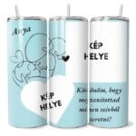 Az Anya Boldogság Egyedi Tumbler egy szívből jövő ajándék, amely tökéletesen kifejezi szeretetedet és háládat. Az elegáns, világoskék háttér és az egyszerű, de érzelmes grafikai elemek – mint az anya-gyermek ölelés és a szív motívum – harmóniában vannak a személyre szabható képhelyekkel. A tumbler „Köszönöm, hogy megtanítottad, milyen szívből szeretni!” üzenete igazán megható, így minden édesanyának különleges érzést nyújt.