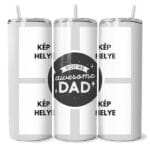 Az Apa Boldogság Egyedi Tumbler az édesapák számára készült különleges ajándék, amely a mindennapok során praktikus és érzelmekkel teli társsá válik. A tumbler klasszikus szürke-fehér dizájnja letisztult eleganciát sugall, középen a “You’re Awesome Dad” felirattal. A négy személyre szabható képkocka lehetővé teszi, hogy az apukával megosztott legszebb emlékeket helyezd el rajta.