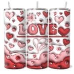 Az Angyal Szíve Tumbler egy romantikus és elegáns Valentin-napi hőtartó pohár, amely szívecskékkel és virágokkal díszített, 3D-s hatású mintájával azonnal elvarázsol. A dizájn középpontjában a „LOVE” felirat áll, amelyet piros és rózsaszín szívek, virágok, valamint felhőket idéző, lágy hullámok vesznek körül. A fehér háttér kiemeli a minták részletességét, miközben modern és kifinomult megjelenést biztosít.